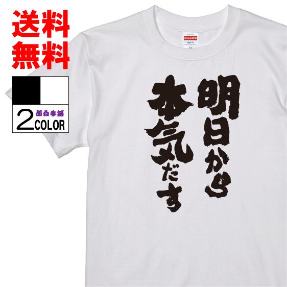 おもしろTシャツ ネタTシャツ 面白tシャツ 明日から本気だす 名言 メンズ レディース パロディ プレゼント お土産 子供 キッズ おもしろ雑貨 白 ホワイト 黒 ブラック 高品質 半袖 w142