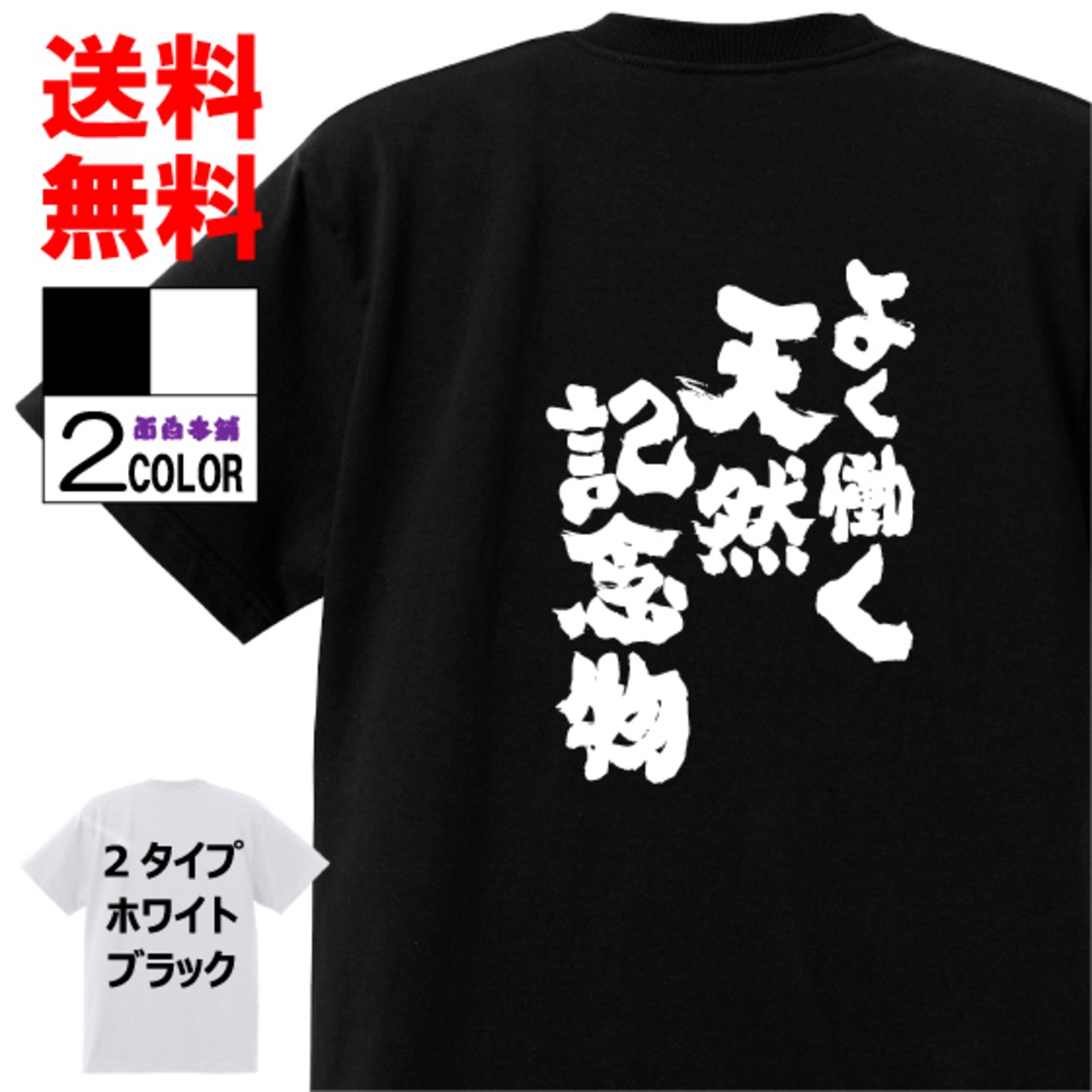 おもしろTシャツおもしろ本舗ネタ面白tシャツ よく働く天然記念物 名言 パロディ メンズ レディース 宴会 子供用 キッズ プレゼント 外国人 お土産 おもしろ雑貨 白 ホワイト 黒 ブラック w171