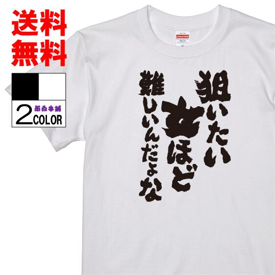 おもしろTシャツ ネタTシャツ 面白tシャツ 狙いたい女ほど 難しいんだよな 名言 メンズ 下ネタ ゲス レディース パロディ プレゼント お土産 子供 キッズ 白黒 w182