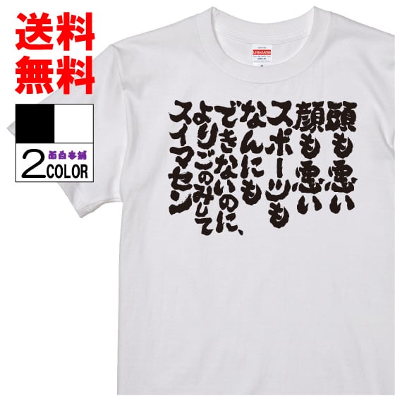 おもしろTシャツ ネタTシャツ 面白tシャツ 頭も悪い顔も悪いスポーツもなんにもできないのに、よりごのみしてスイマセン 名言 パロディ 格言 w230