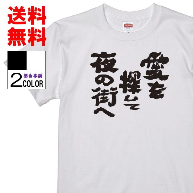 おもしろTシャツ ネタTシャツ 面白tシャツ【愛を探して夜の街へ】名言 メンズ レディース パロディ プレゼント お土産 子供 キッズ 白 ホワイト 黒 ブラック 高品質 半袖 a215