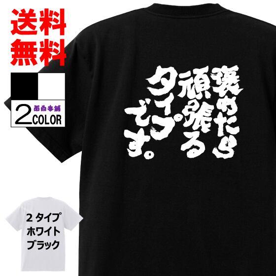 おもしろTシャツ ネタTシャツ 面白tシャツ 褒めたら頑張るタイプです 名言 言葉 文字 語録 メンズ レディース パロディ プレゼント お土産 子供 キッズ おもしろ雑貨 白 黒 半袖 大きいサイズ w451