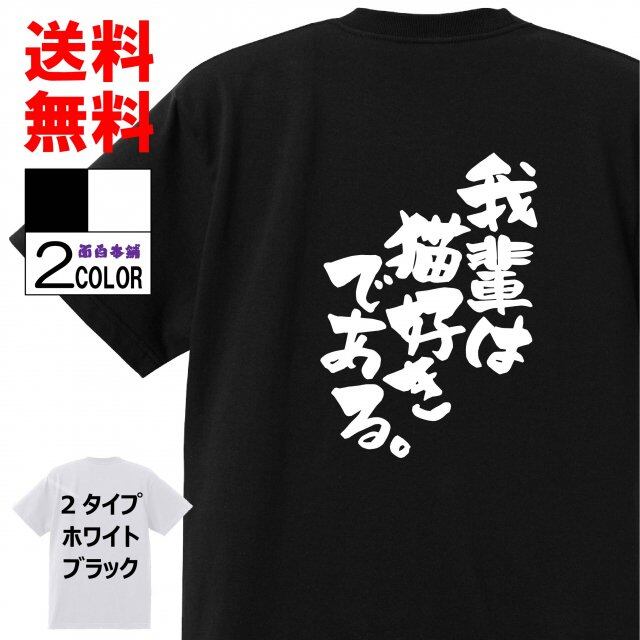 おもしろTシャツ ネタTシャツ 面白tシャツ 我輩は猫好きである 名言 パロディ 文字 格言 言葉 メンズ レディース 宴会 子供用 キッズ プレゼント お土産 おもしろ雑貨 大きいサイズ 白黒 w582